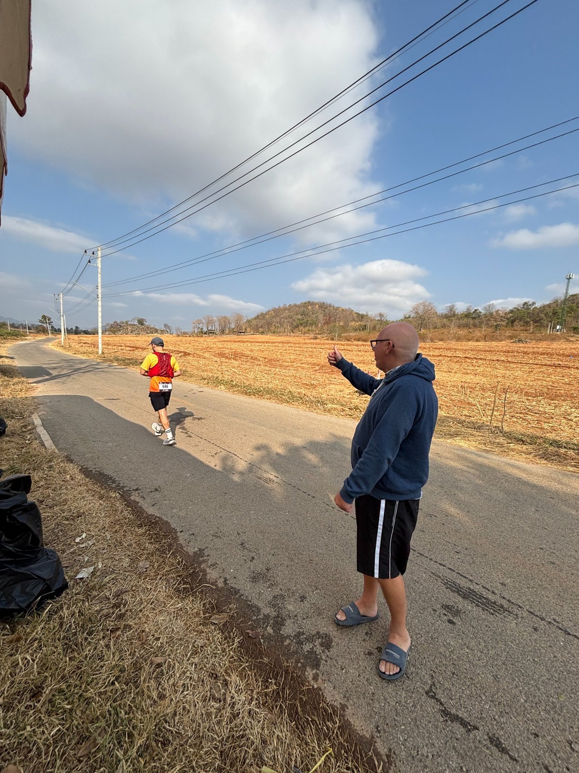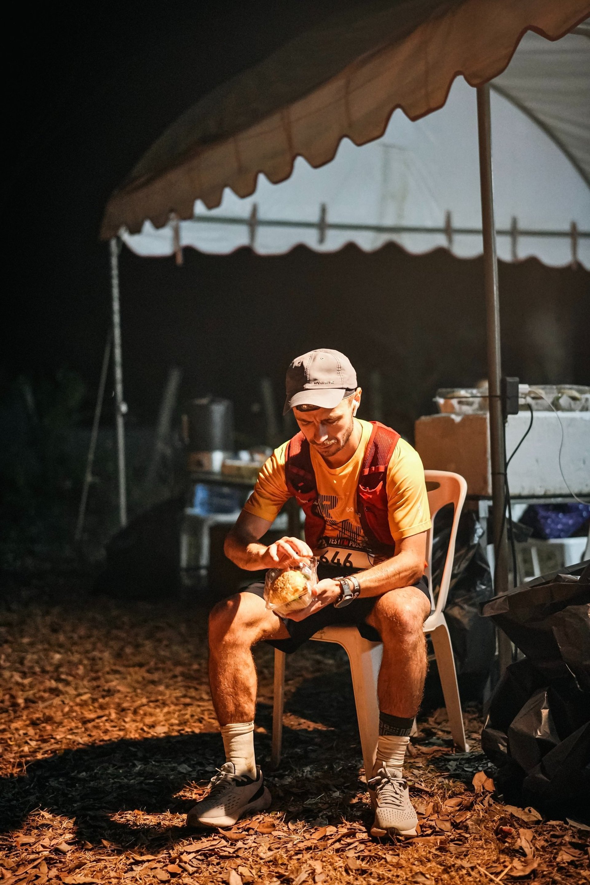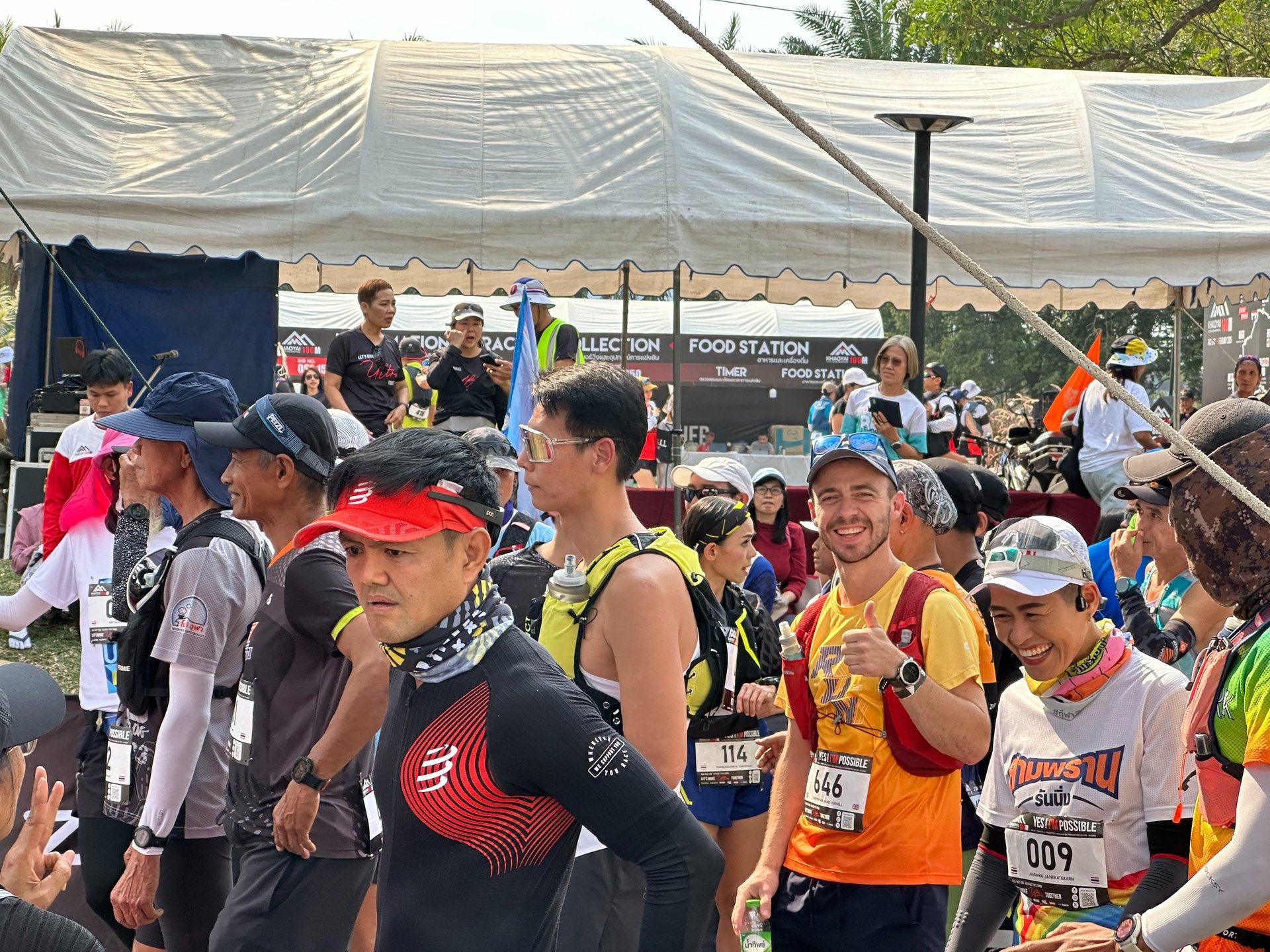 I think we often focus so much on the physicality of running, training hard, and becoming ready for the challenge, but the mental training is often overlooked. After 50km at the Khao Yai race, I reached a checkpoint and needed food. I remember struggling to eat, not feeling great, and thinking, "This is far too early to be feeling this way". I felt frustrated and started to panic. Although this big low came earlier than expected, I needed to listen to my own advice that these dips happen, and they most often pass. I left the checkpoint, set off slowly, and tried to settle back in the race. The sun had set, and it was going to be a long night ahead.